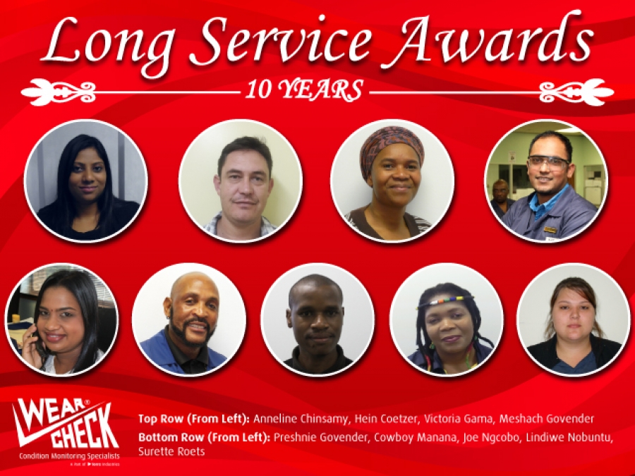 This year, we celebrate these WearCheck workers who have reached the 10 year milestone of being part of the WearCheck family. Well done and thank you for your dedication.