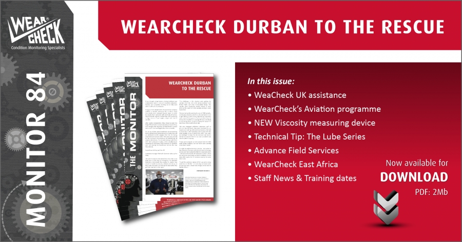 The latest issue of our Monitor newsletter is out, and for the first time ever, it is only available as a digital copy. This bumper issue carries stories on Technical Compliance, viscosity index improvers (VIIs), and the details on our brand new Rheo-stick kits for testing viscosity. Our aviation division is also featured, along with an amazing story of how WearCheck SA came to the help of sister company WearCheck UK following an emergency during lockdown. You can also view the 2021 training schedule and other stories.