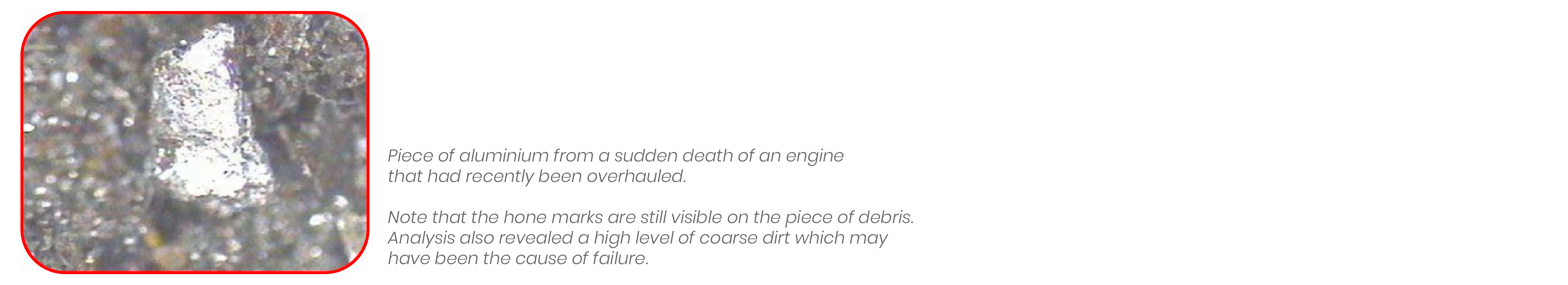 Filter analysis involves the removal of a small amount of the filter medium. This is then agitated with special solvents to remove the debris, the solvent is then filtered through a membrane and examined under a microscope. Basic metal types such as iron, copper, white metal and aluminium are identified and quantified. The same analysis is performed on contaminants such as dirt, rust, carbon grit and oil residues.