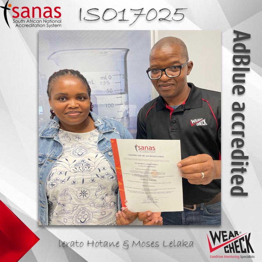 At WearCheck, we’re thrilled to share some exciting news—our Water division has become the first laboratory in Africa to achieve ISO17025 accreditation for testing AdBlue®/DEF (Diesel Exhaust Fluid)! This certification, granted by the South African National Accreditation System (SANAS), is a major milestone that reinforces our commitment to quality and precision.
