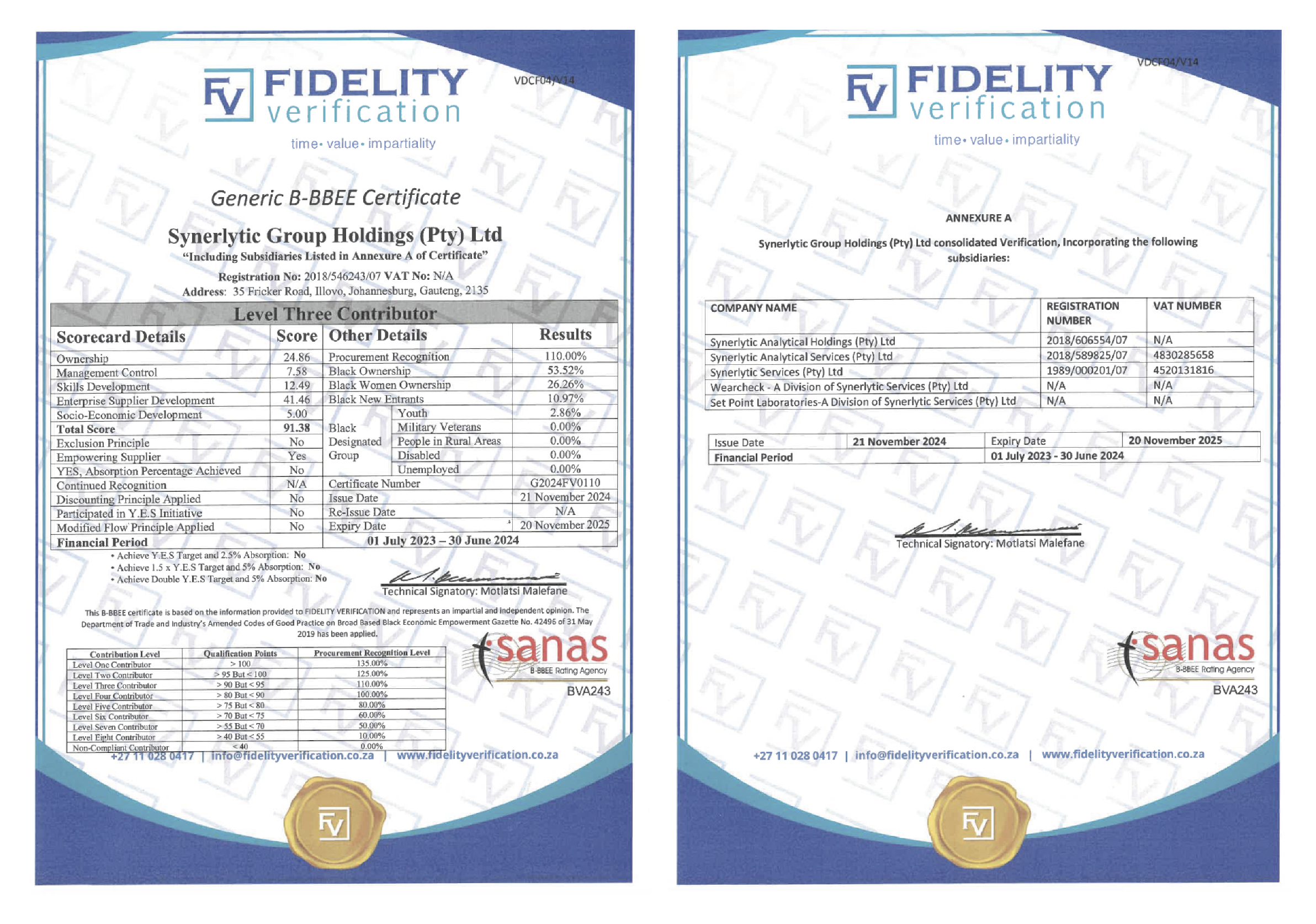 WearCheck is a member of Synerlytic Analytical Holdings (PTY) LTD, which has been independently rated as a Level 3 Contributor for its Broad-Based Black Economic Empowerment (BBBEE) programme.