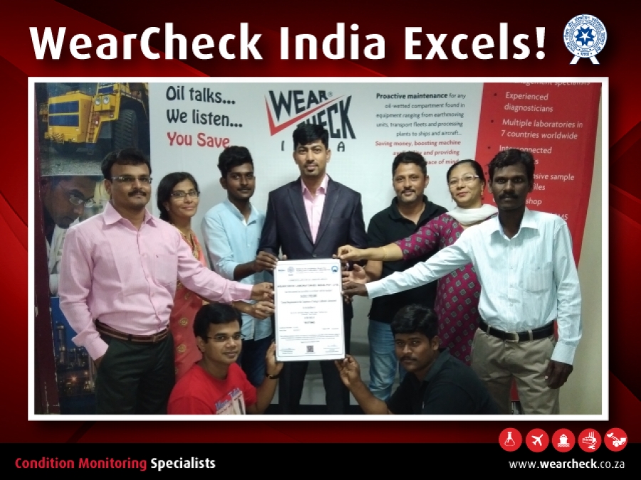 Hearty congratulations to WearCheck India on achieving their ISO 17025 accreditation for the oil lab.